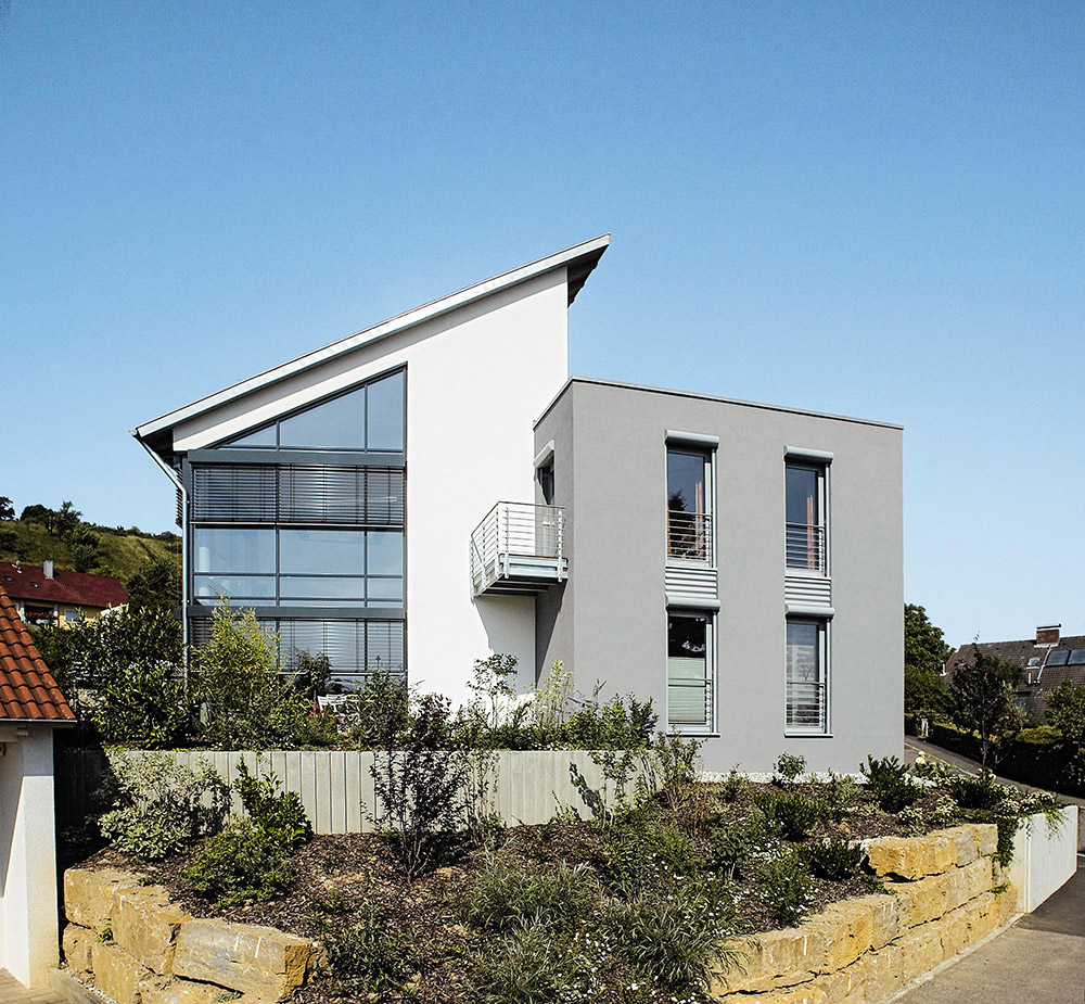 Kombinácia bezpečnostného skla a nerezovej tyče proti pádu umožňuje ďalšiu možnosť vytvorenia individuálnych akcentov fasády.